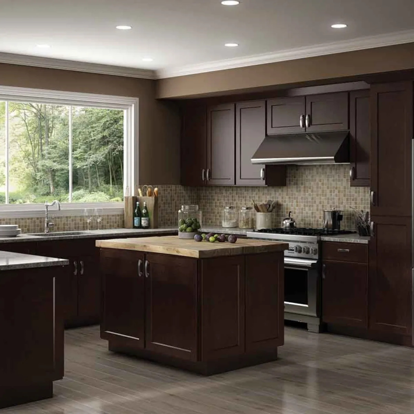 CNC Luxor Espresso Cabinetry elevates any space with its timeless shaker-style doors and partial overlay design. Ideal for both traditional and contemporary interiors, these cabinets offer the perfect balance of style and functionality. Built with all-plywood construction and durable dovetail drawer joints, they are designed for long-lasting performance. Soft-close hinges and glides provide smooth, quiet operation, adding a touch of luxury to everyday use. Also available in smoky grey, harvest, white, and misty grey, CNC Luxor cabinetry offers versatile style and reliable performance. With exceptional craftsmanship and timeless appeal, it's a perfect choice for enhancing kitchens, bathrooms, and other living spaces in any design.